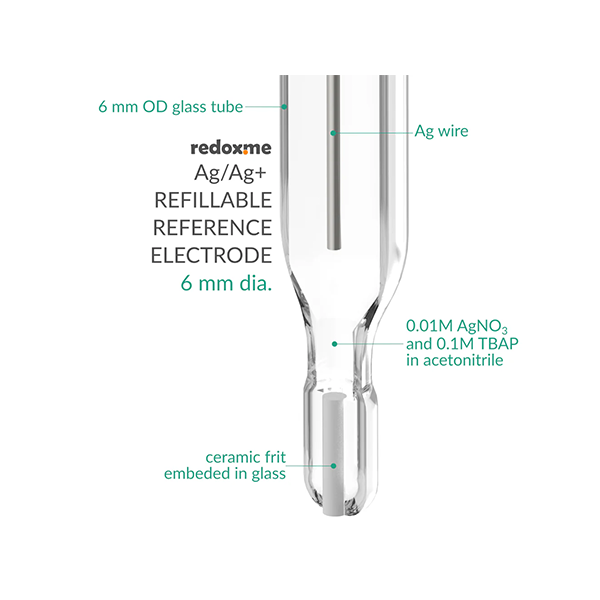 非水性银/银离子可再填充参比电极 - 直径 6 mm